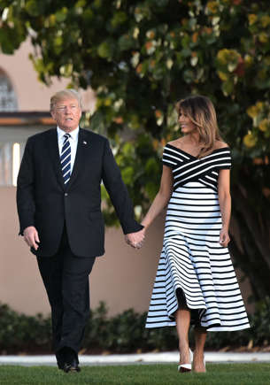 The president and first lady had a rare matching moment in April 2018, wearing coordinating striped looks.©Mandel NGAN / AFP / Getty Images