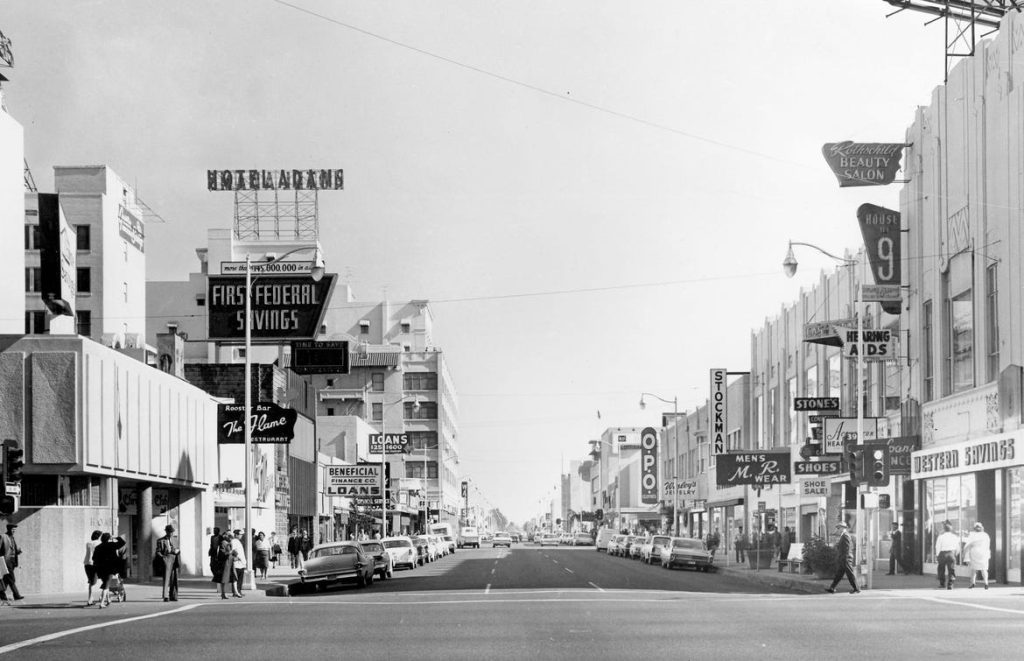 Cen­tral Avenue in Phoenix, shown in the ear­ly 1960s, was orig­i­nal­ly called Cen­tre, then Cen­ter
