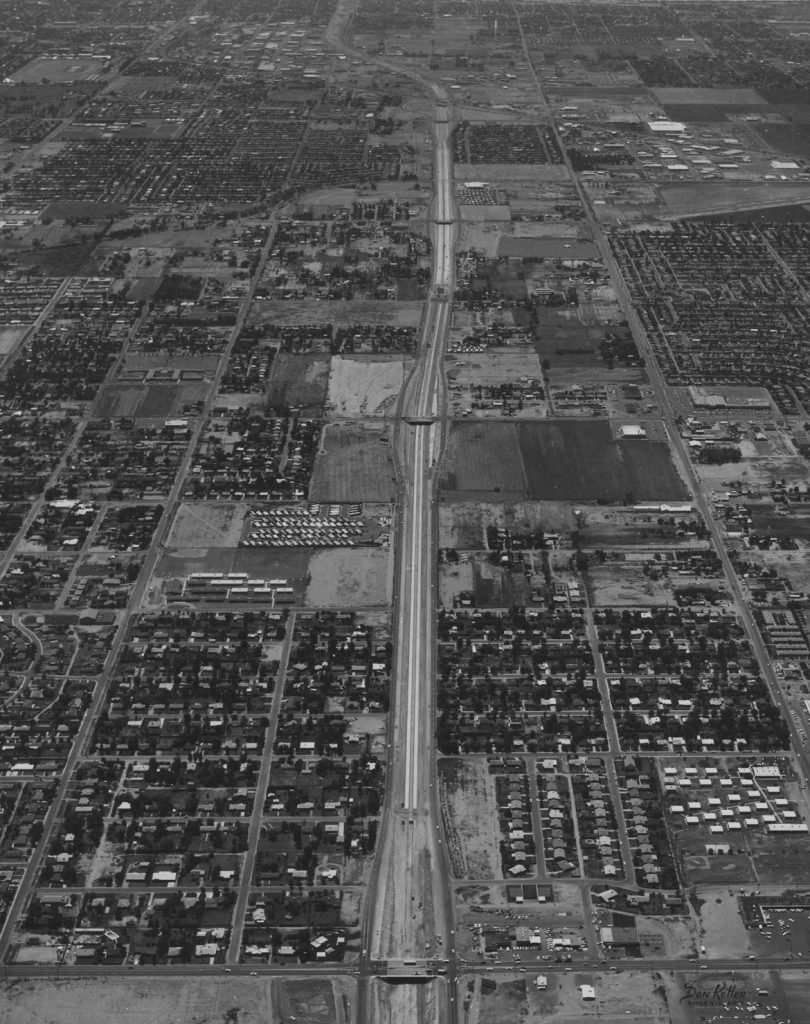 Inter­state 17, the Black Canyon Free­way, was the first free­way in Phoenix. This 1960 pho­to shows a stretch from Bethany Home Road to Grand Avenue.