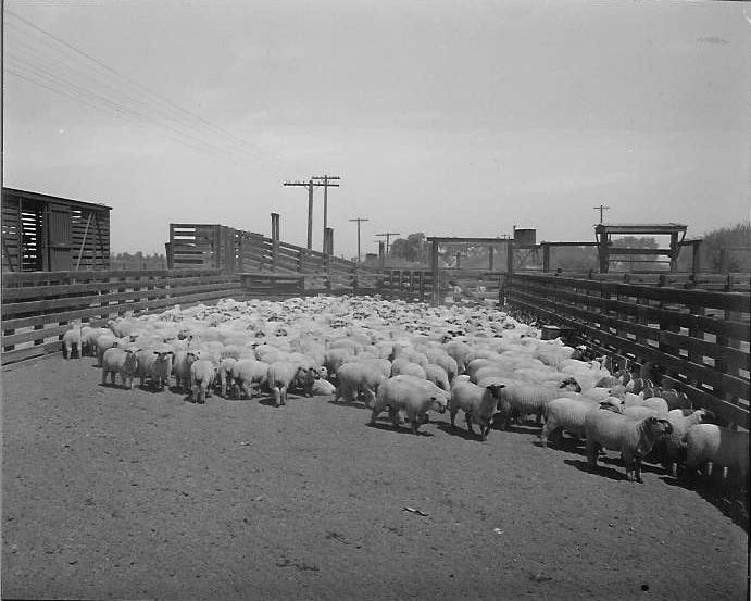 A roundup of the Dob­son sheep herd near Elliot Road and the rail­road tracks east of Ari­zona Avenue in the ear­ly 1960s.