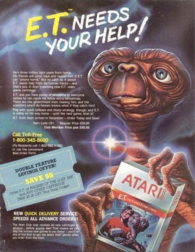 A game often given poster child status to this era, E.T. the Extra-Terrestrial had such bad sale figures that the remaining unsold cartridges were buried in the deserts of New Mexico.