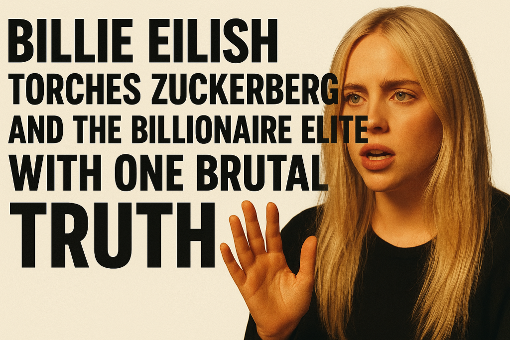 At a glitzy Man­hat­tan awards cer­e­mo­ny full of design­er tux­es, cham­pagne flutes, and ego the size of Jeff Bezos’ rock­et, 23-year-old Bil­lie Eil­ish grabbed the mic — and det­o­nat­ed a truth bomb right in the mid­dle of America’s wealth-wor­ship­ing elite.