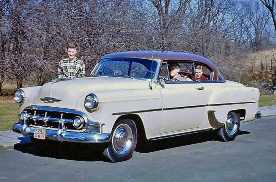 A family was out on a ride in their close to new 1953 Chevrolet Two-Ten Sport Coupe when they stopped for a photo. This was a new companion to the Bel Air Sport Coupe which outsold it by over a seven to one margin. It was canceled for 1954 but came back and stayed during the Tri-five era. This one was dressed up with a radio, outside mirror, wheel trim rings, and had a Connecticut license plate