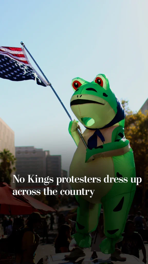 Demonstrators opposing the administration’s policies have adopted unconventional and symbolic forms of protest, appearing in public spaces wearing inflatable costumes, colorful outfits, and humorous props, including oversized frogs and other figures. The demonstrations have been reported in cities such as Atlanta, Portland, New York, and Chicago, where crowds gathered peacefully to express political dissent.