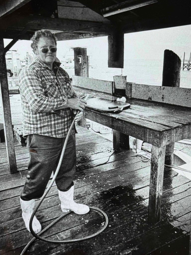 Sonny Sullivan is seen at his place on the Bowers Beach dock where he has “fresh fish daily” on May 3, 1985.