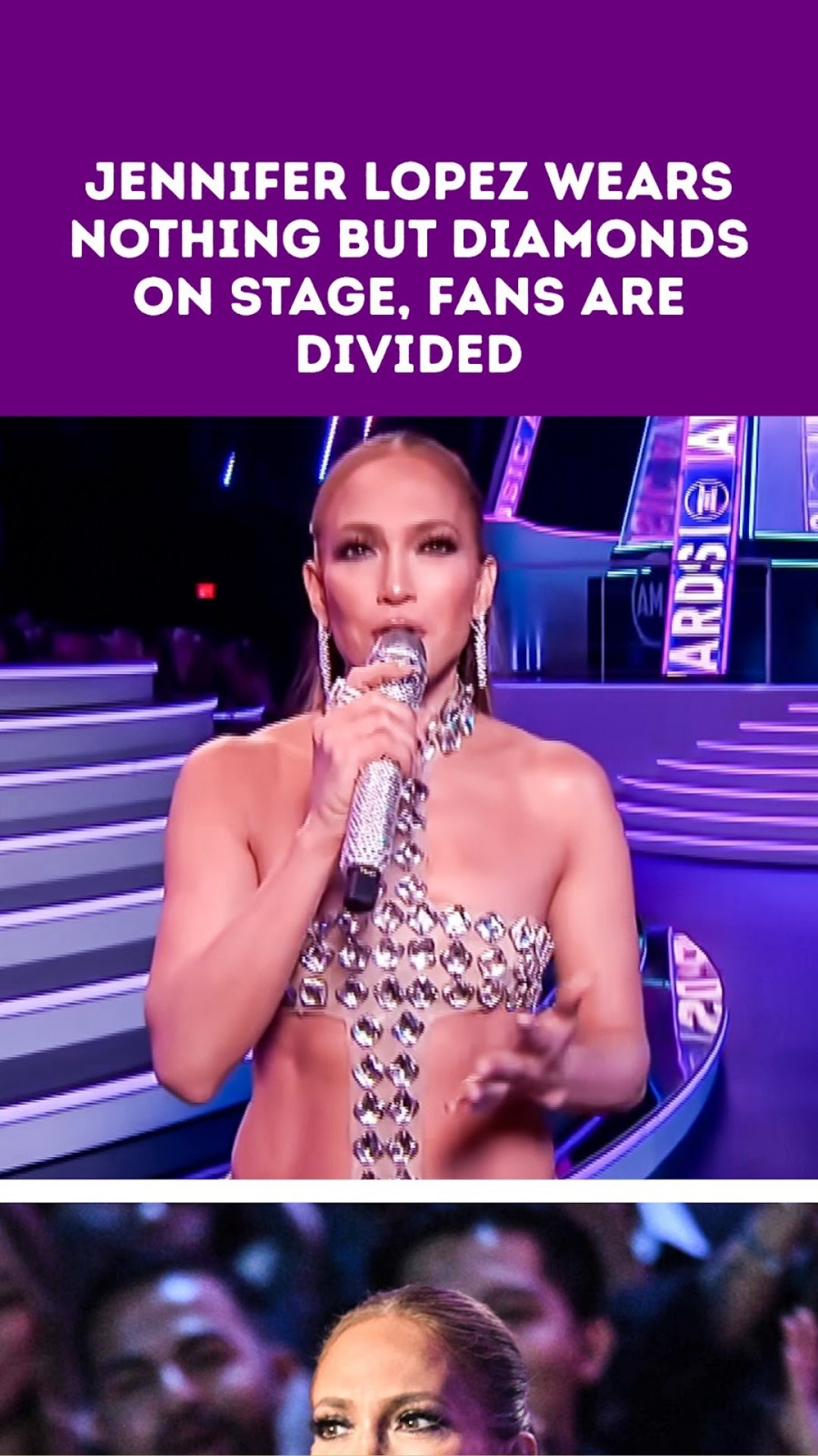 This shimmering masterpiece featured dramatic cutouts and a sheer fringe skirt, perfectly highlighting Lopez’s famously toned physique. The outfit wasn’t just a dress—it was a spectacle, radiating glamour and confidence, an unfiltered display of her fearless fashion spirit. The diamonds sparkled under the stage lights like constellations, turning Lopez into a celestial figure gracing the AMAs red carpet.