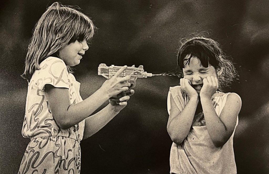 Jennifer Hottes, 7, cools off Lynette Stearrett, 5, with her water pistol in Kosciuszko Park in Wilmington in this photo taken on July 10, 1988