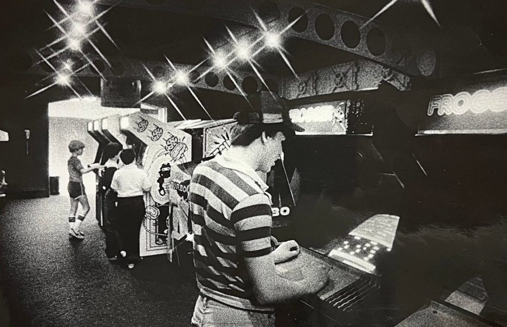 Visitors play arcade games, like Frogger, at Space Port at the Concord Mall in this photo taken on June 23, 1982.