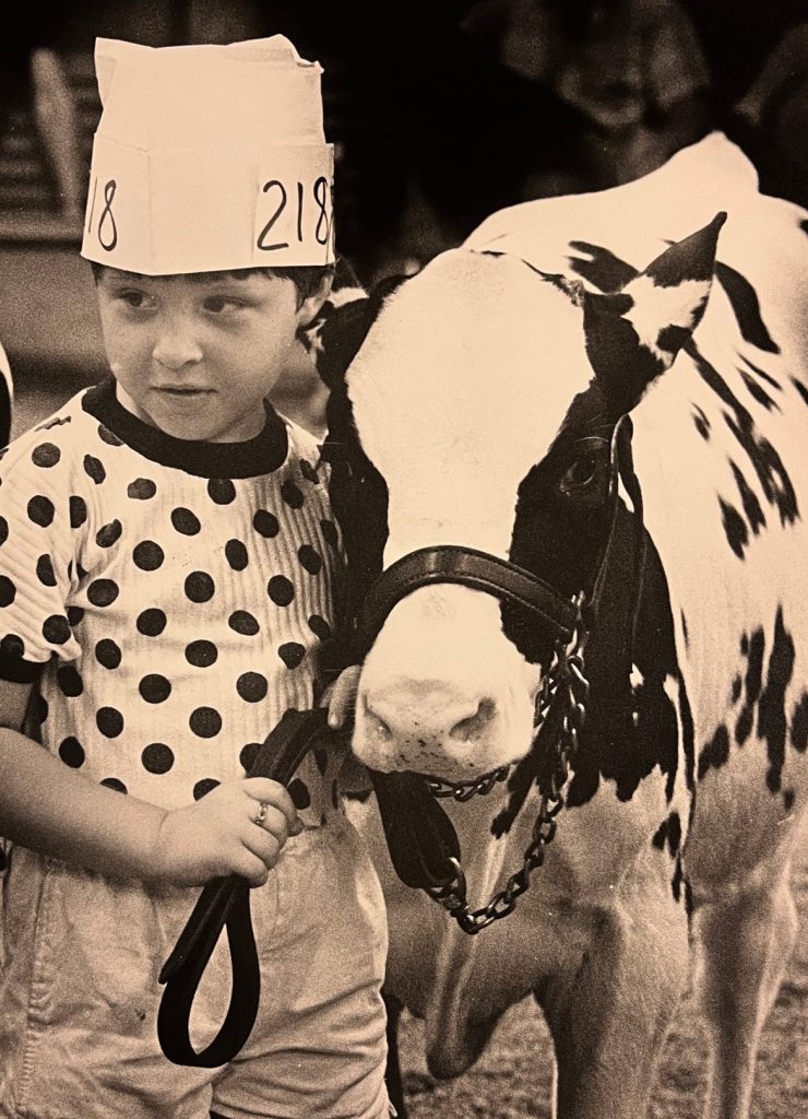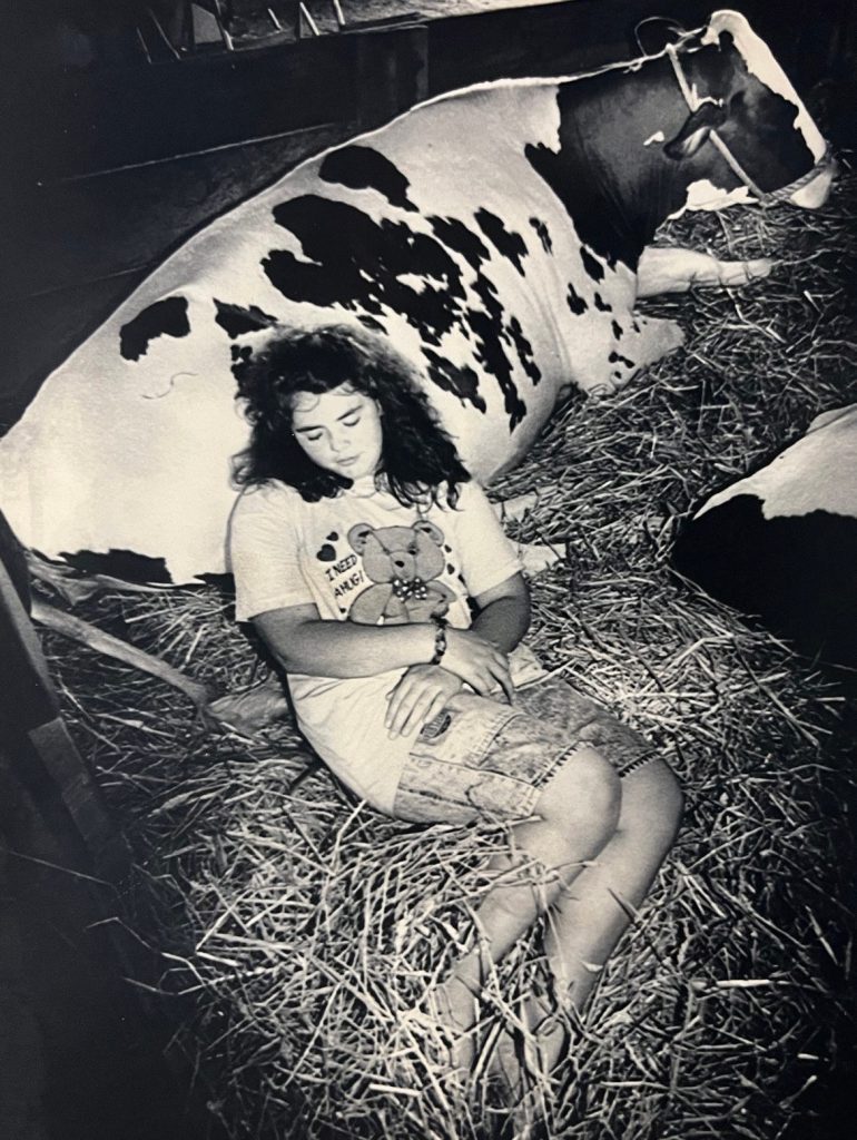 Martha Phipps, of Centerville, finds a friendly pillow – one of her Holstein cows – on the last day of the Delaware State Fair in this photo published on July 31, 1988