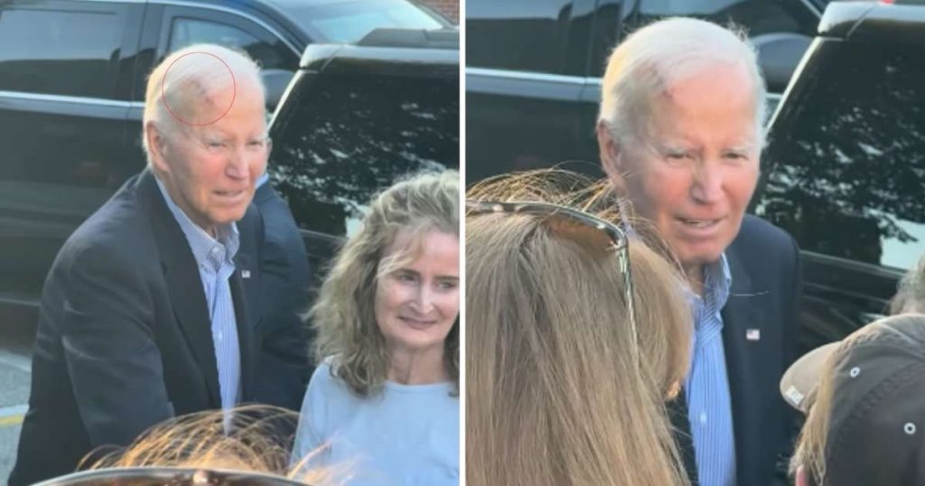 REHOBOTH BEACH, DELAWARE – Former President Joe Biden sparked a new wave of health concerns after he was spotted leaving a Delaware church over Labor Day weekend with a visible red gash across his head.