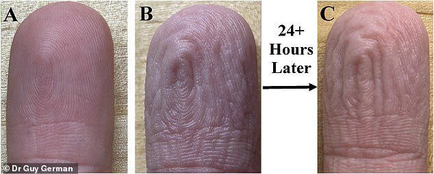 The study, published in the Journal of the Mechanical Behavior of Biomedical Materials, also confirmed that people with nerve damage in their fingers don’t develop these wrinkles, further proving that the reaction depends on a functioning nervous system.