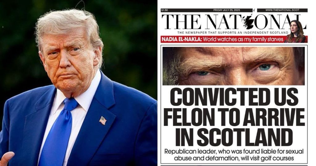 Claim: Scottish newspaper The National’s headline about Trump’s visit referred to him as ‘convicted US felon’
