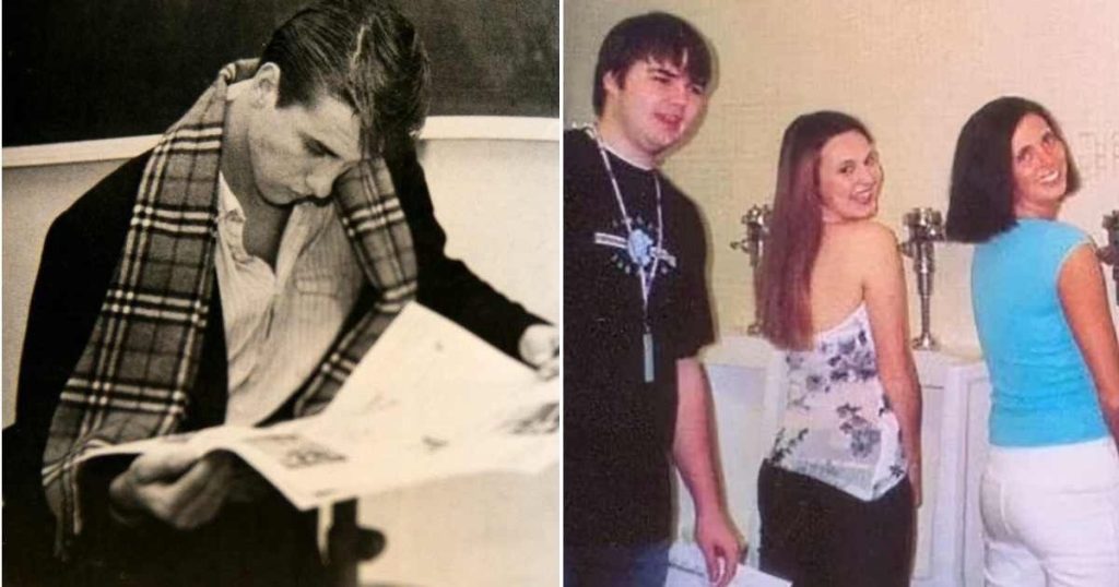 On the right, JD Vance was seen clowning around in a bathroom, posing with two girls pretending to use the men’s urinal. He sported a goofy haircut and an even goofier grin. All in all, he looked like a typical American high school kid who didn’t take himself too seriously.