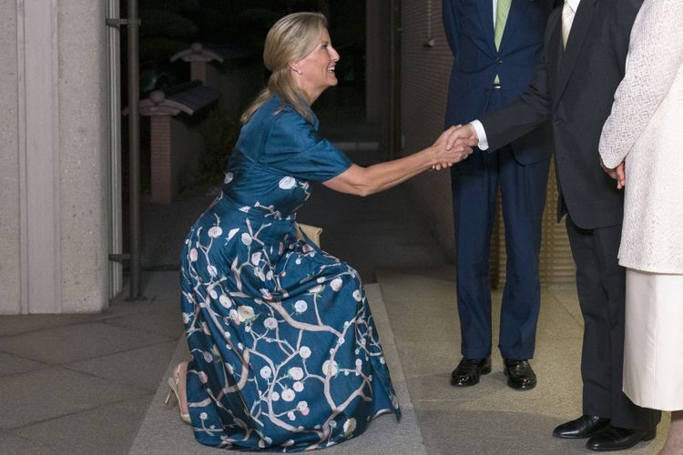The Duchess of Edinburgh, 60, dipped into an impressive curtsy when she met the Emperor of Japan, 65, at the Imperial Palace in Tokyo on Sept. 19.