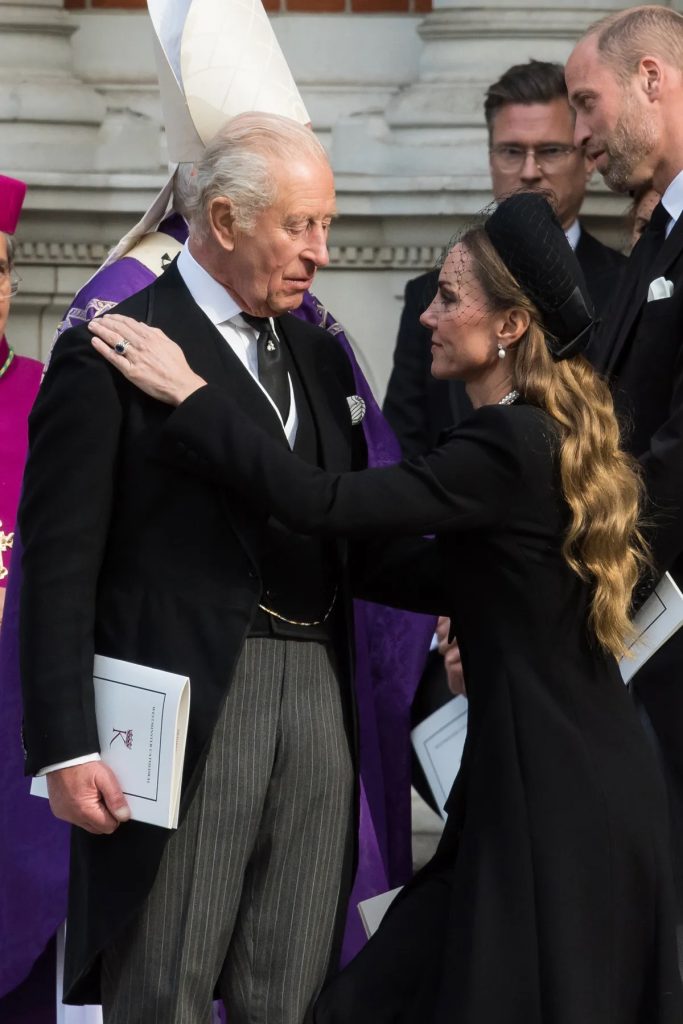 On Sept. 16, Kate Middleton dipped into a quick curtsy when she said goodbye to King Charles following the funeral of Katharine, Duchess of Kent at Westminster Cathedral. Kate is known to curtsy to her father-in-law in public as a gesture of respect, and she dropped into the curtsy after giving him a kiss on each cheek.