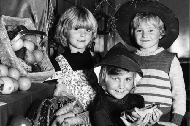 Fleet­wood young­sters got their gifts ready for the har­vest fes­ti­val at Blak­iston Infants School. From left Aman­da Wal­der­man, Helen Brick­man and Andrew Eaton, Octo­ber 5 1979 | Nation­al World