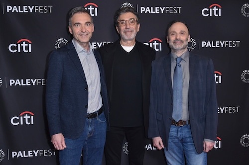 Steve Holland, from left,Chuck Lorre and Steven Molaro arrive at a screening of “Young Sheldon” during PaleyFest on Sunday, April 14, 2024, at the Dolby Theatre in Los Angeles. (Photo by Richard Shotwell/Invision/AP)Richard Shotwell/Invision/AP