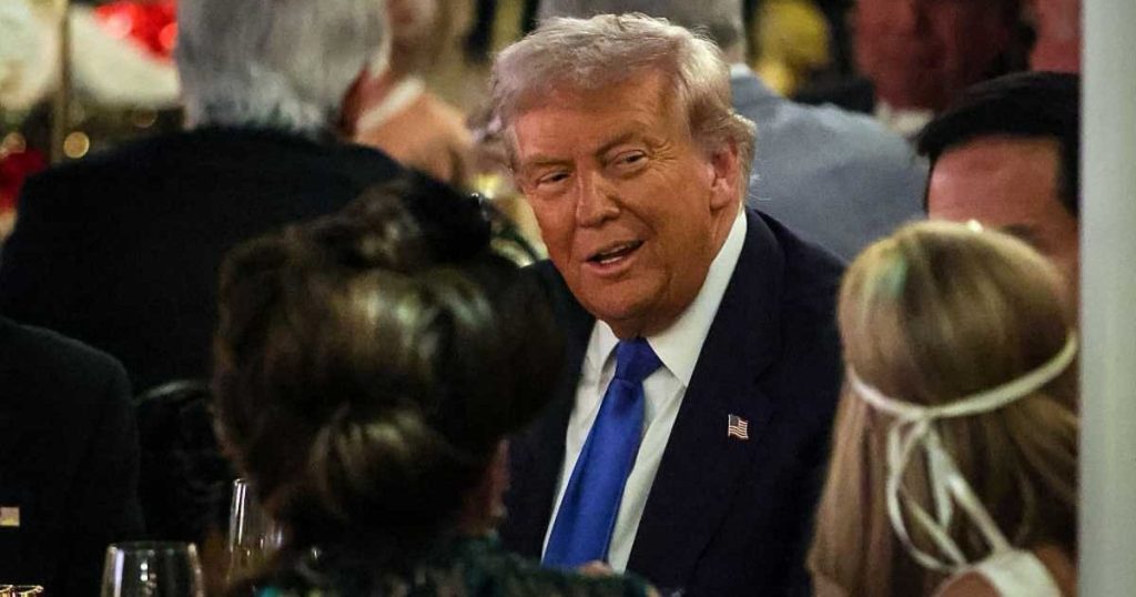 Throughout the evening, the president appeared relaxed and upbeat, smiling, chatting with guests, and even answering a few questions. Trump kept it casual in his signature black-and-white suit and tie, a look straight out of the 2020s.