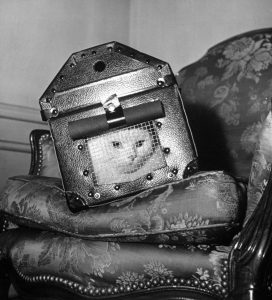 Cats Blackie and Brownie Catching Squirts of Milk During Milking at Arch Badertscher’s dairy farm, Fresno, California, 1954