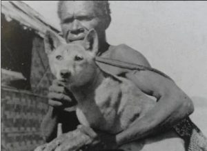 An Aboriginal Australian man with his prized hunting dog, 1950.