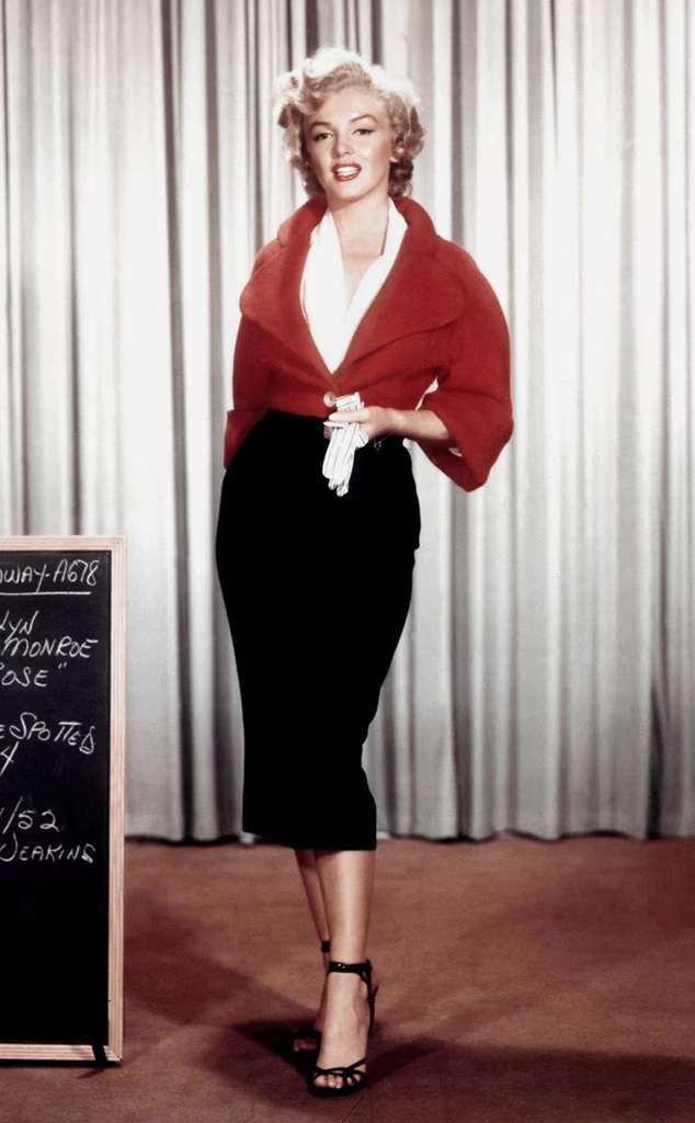 • The hot pink satin gown from Gen­tle­men Pre­fer Blondes, for­ev­er immor­tal­ized in the num­ber “Dia­monds Are a Girl’s Best Friend”, lat­er echoed by Madon­na in Mate­r­i­al Girl.